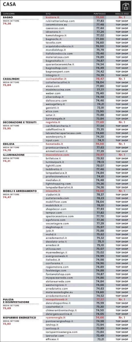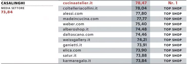 Per il secondo anno consecutivo il sito della Coltelleria Collini rientra tra i migliori siti Italiani, raggiungendo la seconda posizione nella categoria “Casalinghi” con un punteggio di 78,04.