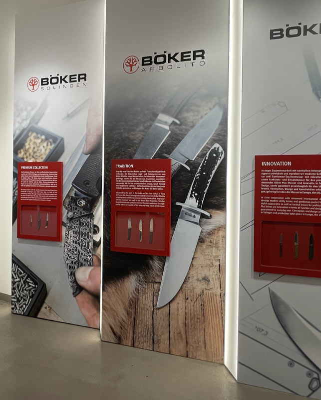 Il terzo giorno, invece, ho visitato la Boker azienda di coltelli di fama mondiale, fondata nel 1869 da Hermann Boker nella città di Remscheid, nella regione tedesca del Bergisches Land. Nel 1986, l'azienda si trasferì a Solingen, la città dei coltelli. Oggi, la Boker è uno dei produttori di coltelli più antichi e rinomati al mondo, con una vasta gamma di prodotti di alta qualità e design innovativo. La Boker produce una vasta gamma di coltelli, tra cui coltelli da cucina, coltelli da caccia, coltelli tattici e coltelli da collezione. La qualità dei suoi prodotti è leggendaria, grazie alla sua attenzione per i dettagli, ai materiali di prima scelta utilizzati nella loro produzione e all'eccellente artigianalità. Sono stato accompagnato dal responsabile alle vendite Miguel in un tour completo dell'azienda, dalla parte produttiva a quella di marketing, fino alla visione delle ultime novità.